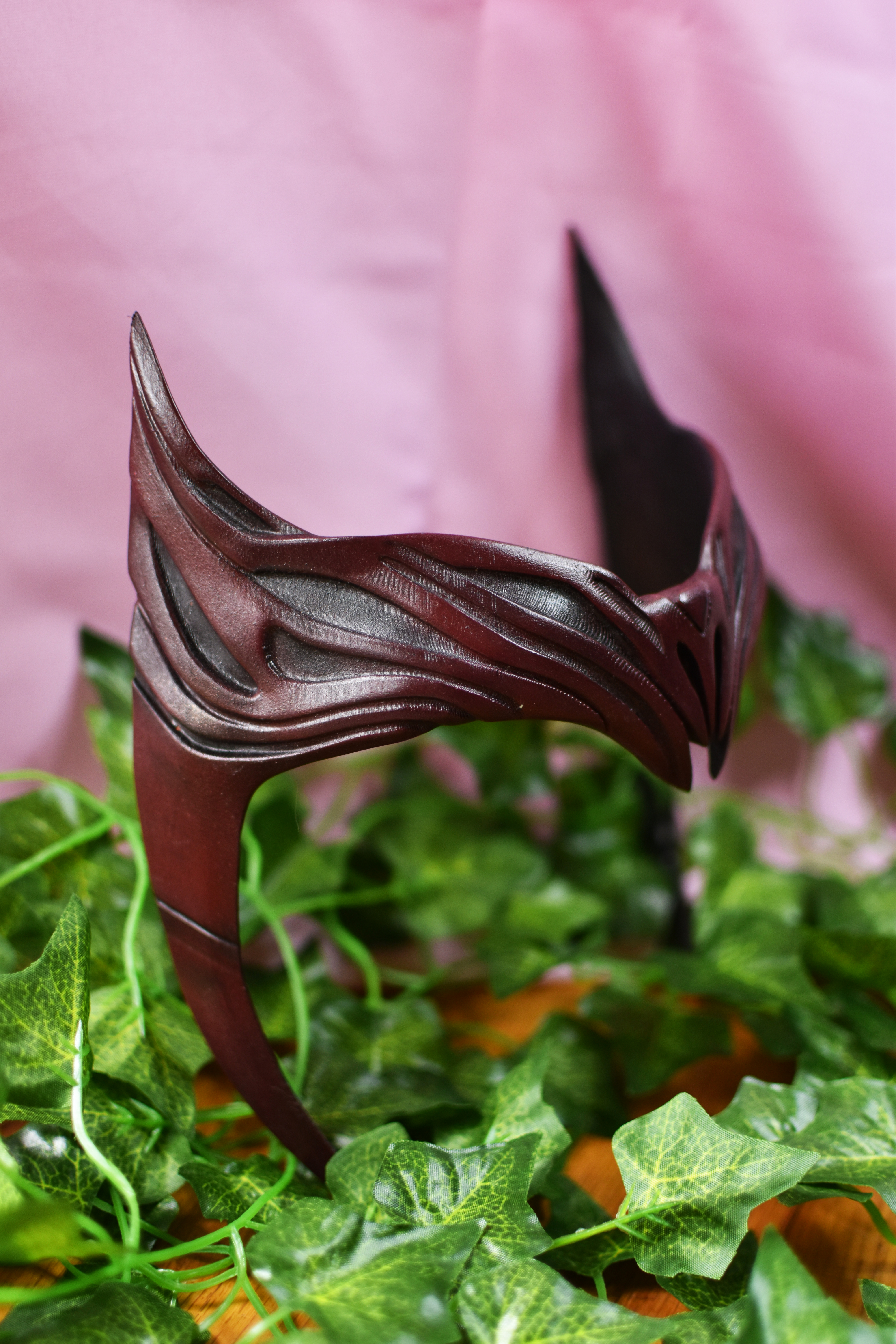 For this Scarlet Witch Headpiece I had no issues with sizing or printing so I was able to quickly get to finishing it. Like my Winter Soldier Mask, I sanded down my print to get rid of the lines on the outside. After that it was easy to paint.